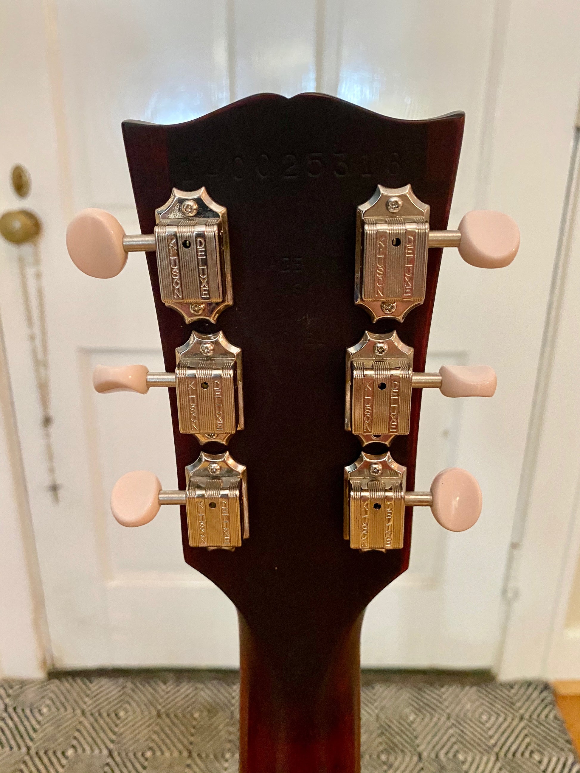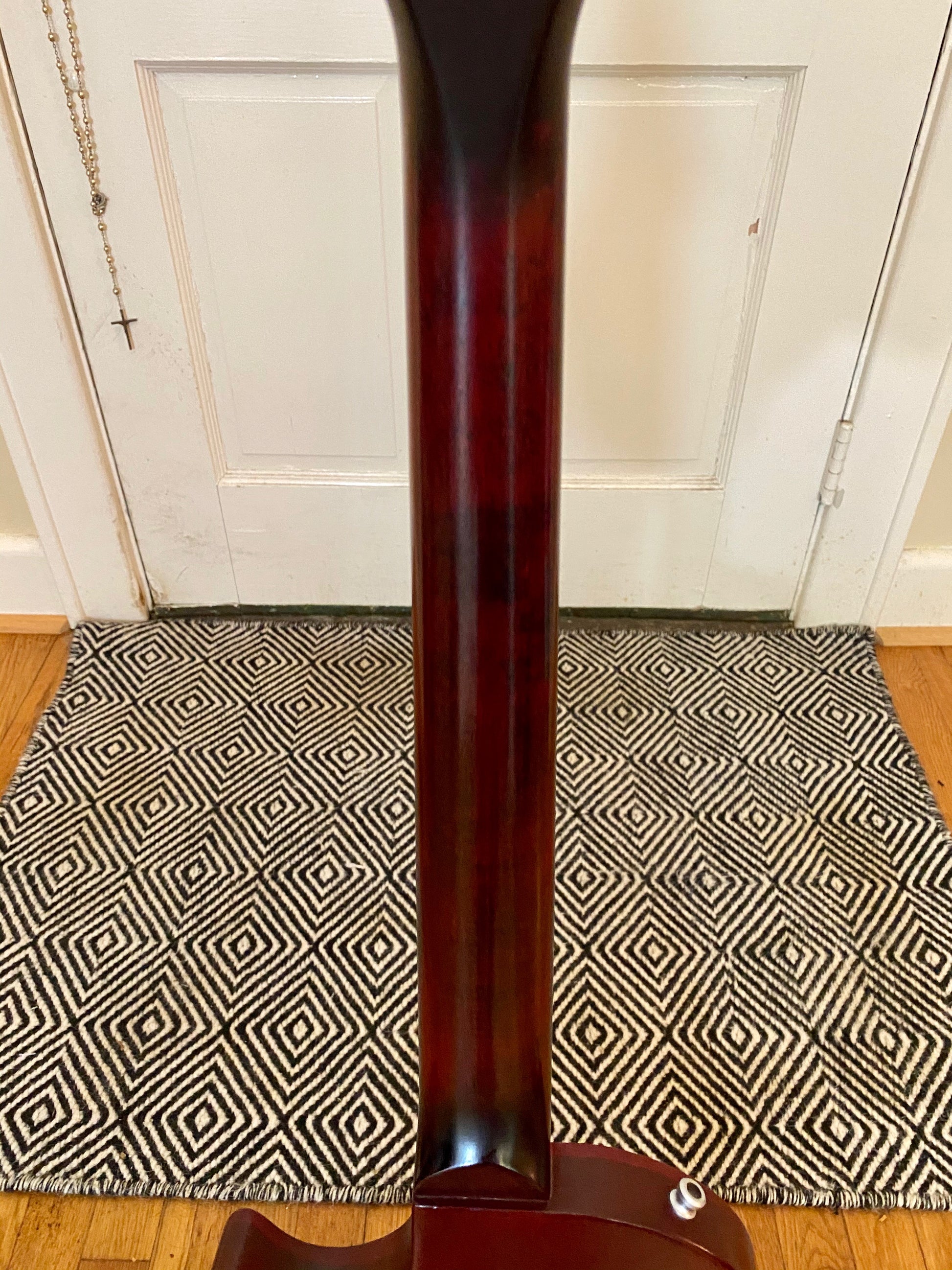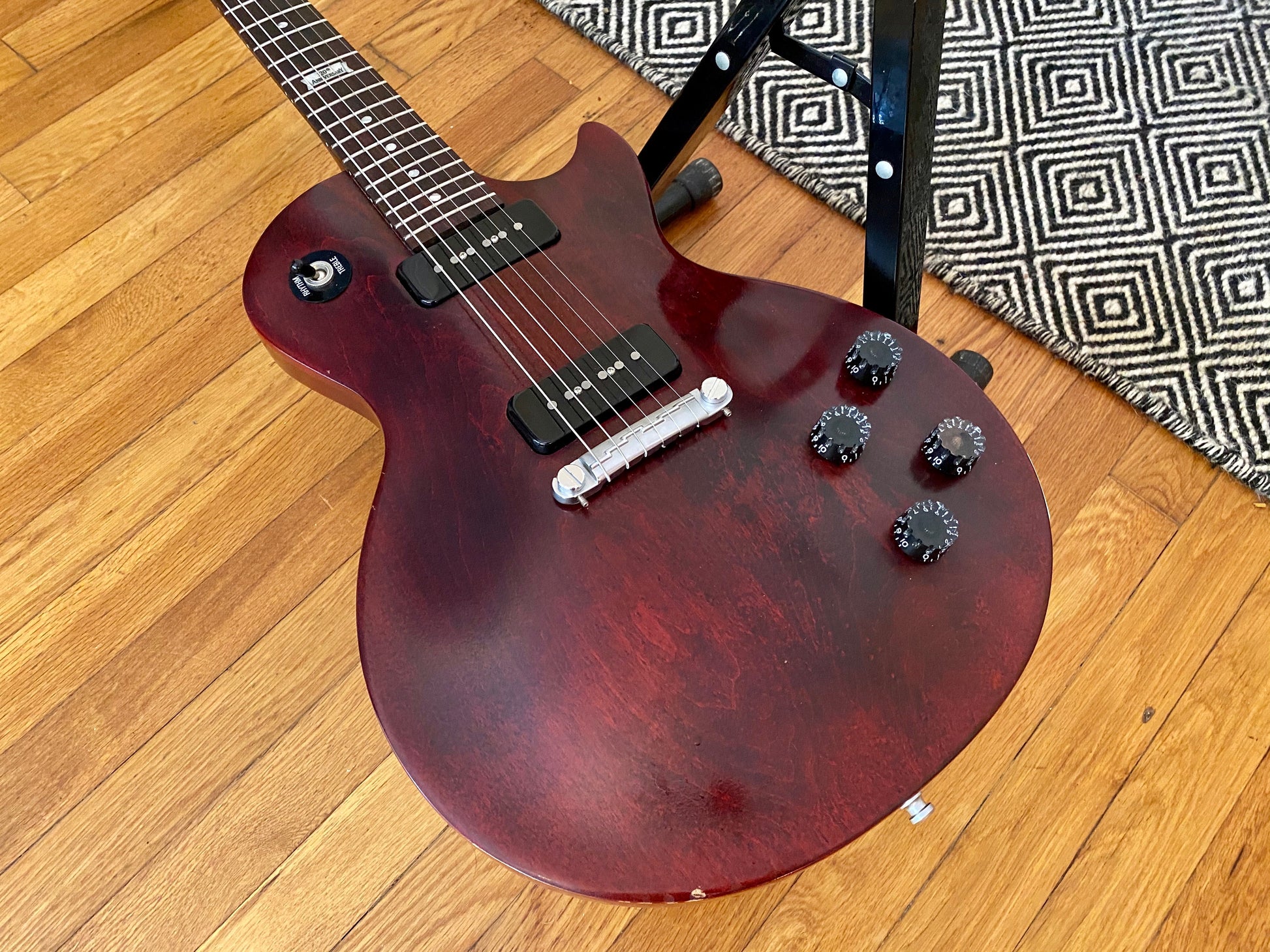 Here's a super nice and clean 2014 Gibson USA Melody Maker finished in Wine Red Satin. This guitar has fantastic setup with a fresh stainless steel re-fret, and Graph Tech nut. The original bridge posts have been upgraded with locking inserts. Plays and sounds fantastic. Stays in tune like it should. All electronics function properly without any static or scratching.
