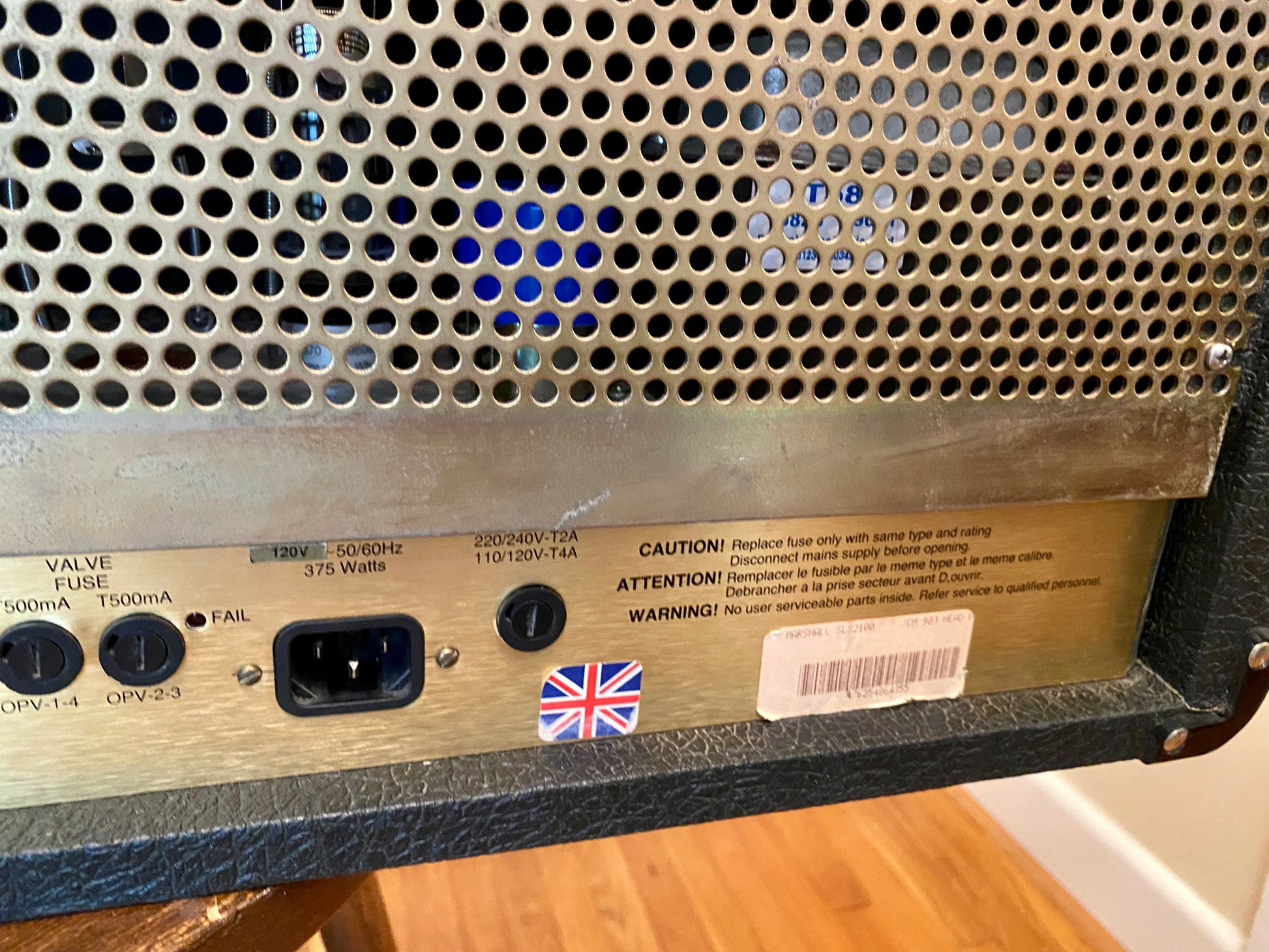 Here's a very nice and clean 1996 Marshall JCM 900 SL-X 2100 Hi Gain Master Volume 100w guitar amplifier head. This amplifier has been recently serviced with fresh power supply capacitors (F&T) and the bridge rectifier network has been relocated off the PCB and is now chassis mounted.