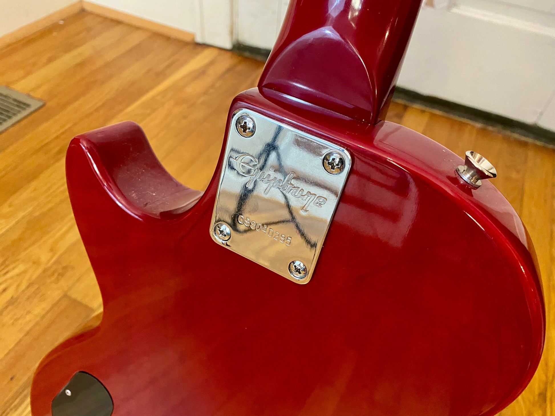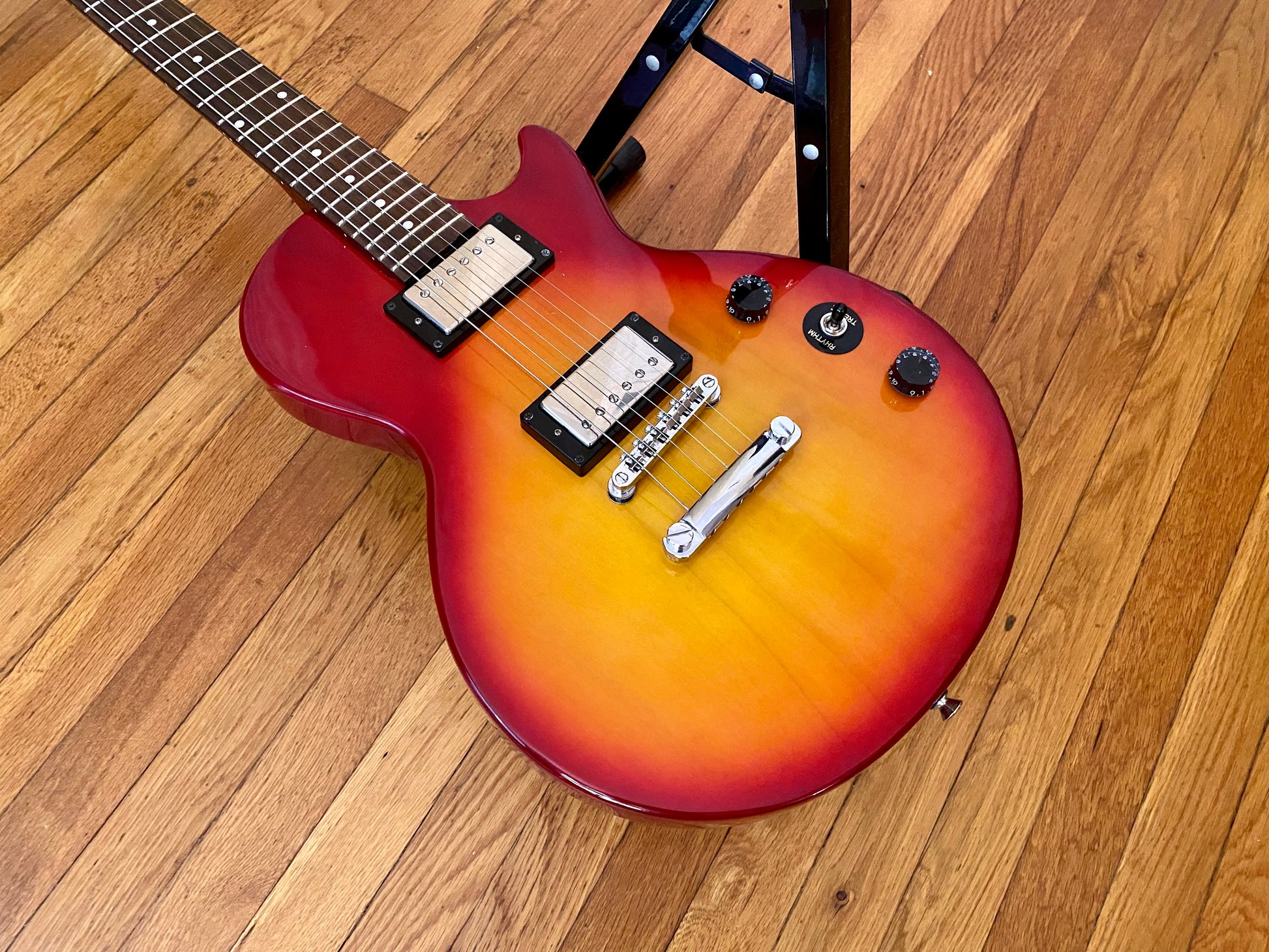 Here's a super nice and clean 1999 Epiphone Les Paul Special II finished in the original Cherry Sunburst. This guitar has been completely overhauled with a full setup (fret level/crown/polish, action/intonation set low and comfortable), upgraded Epiphone HOTCH/57CH pickups, and upgraded wiring harness ( Bourns Mini Pots, Switchcraft Toggle/Jack, Mallory 150 .022 µF Capacitor.