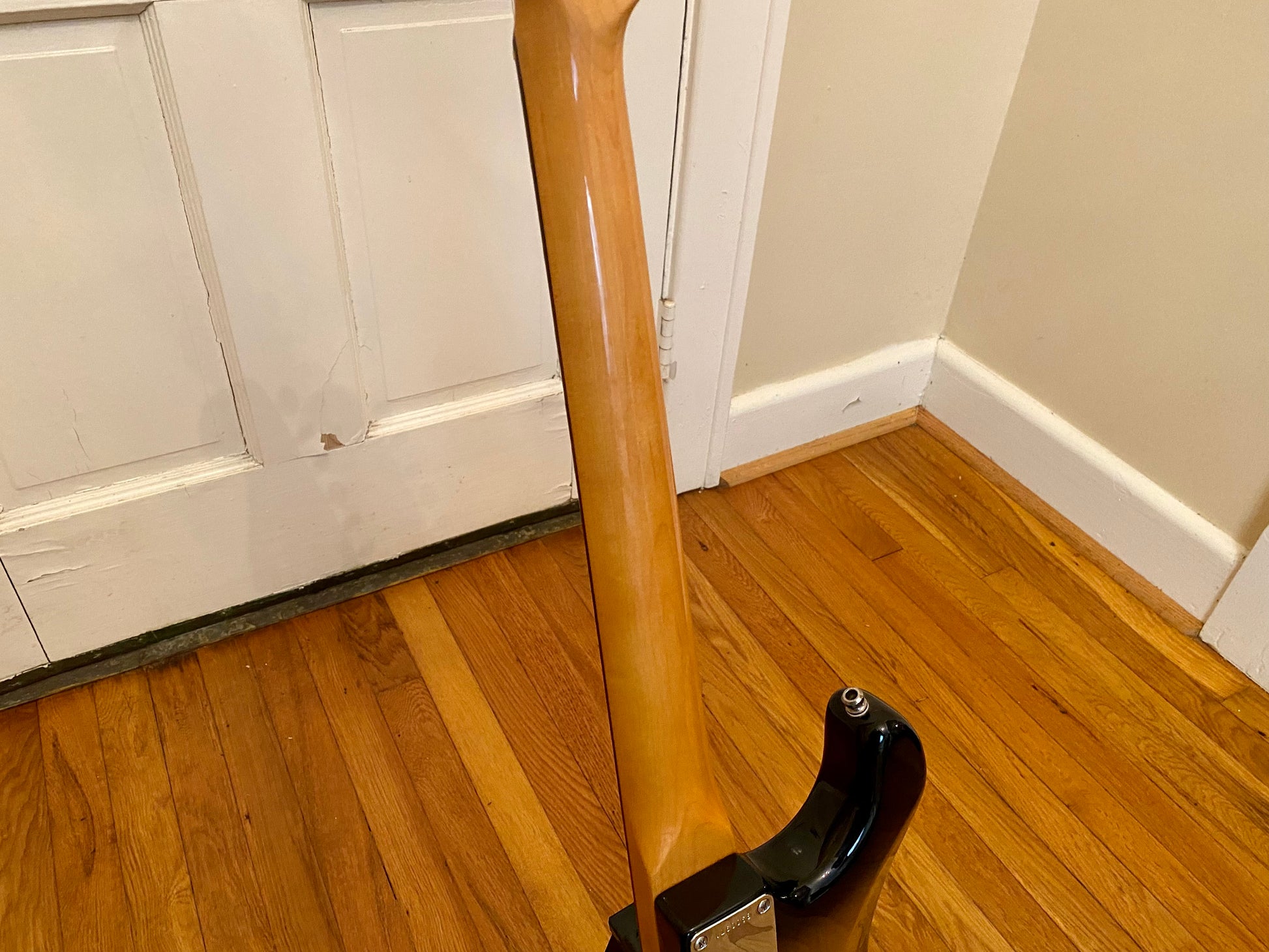 The neck is straight and the truss rod functions properly. The fretboard has been cleaned and conditioned. The frets have been leveled/crowned/polished and it now plays like an absolutely dream.