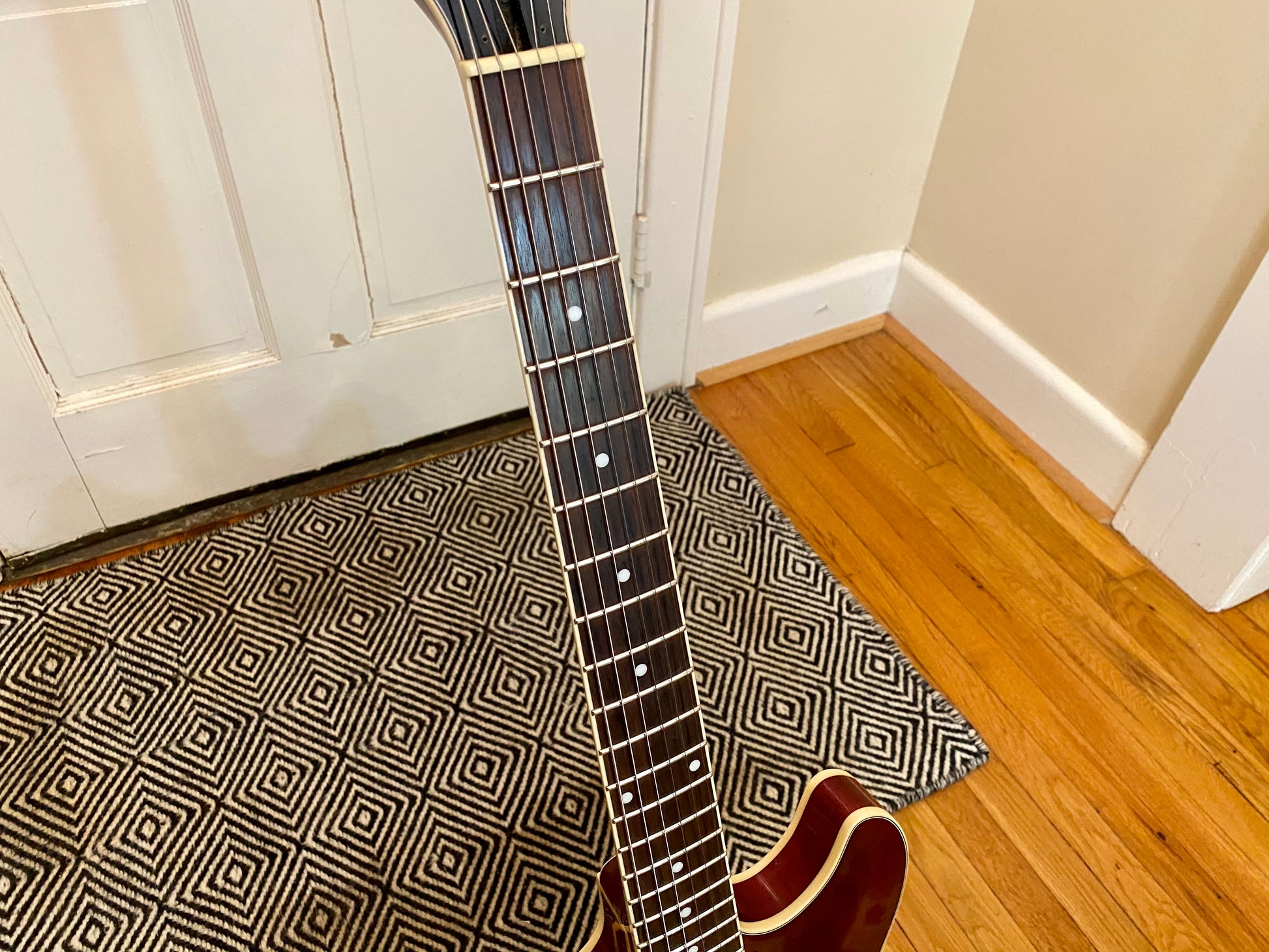 The frets have been leveled/crowned/polished. The action is low and comfortable. The back of the neck has been sanded and is very comfortable. Does have some very minor blemishes around the edges. Plays and sounds great. No Case. USA Only.