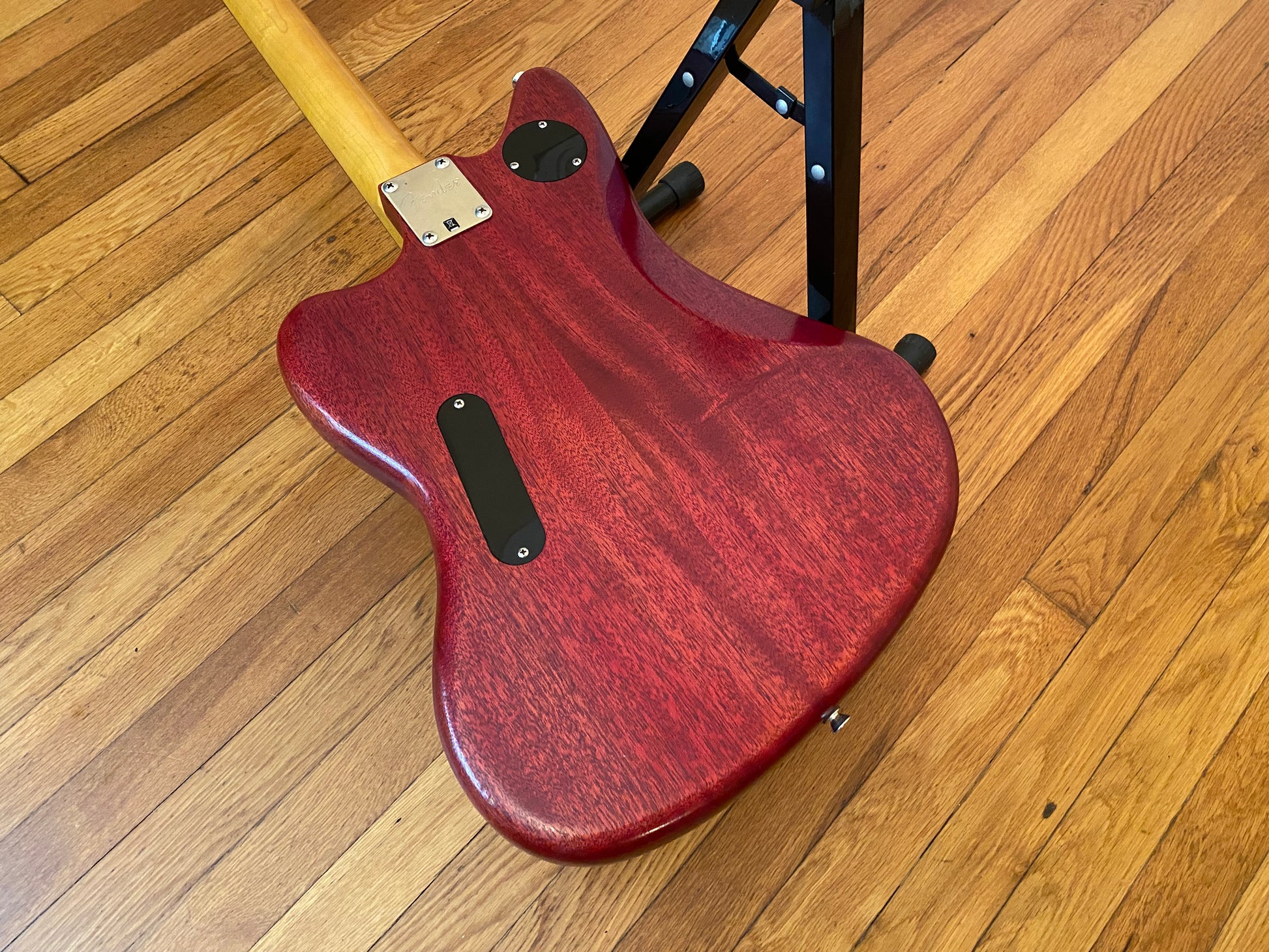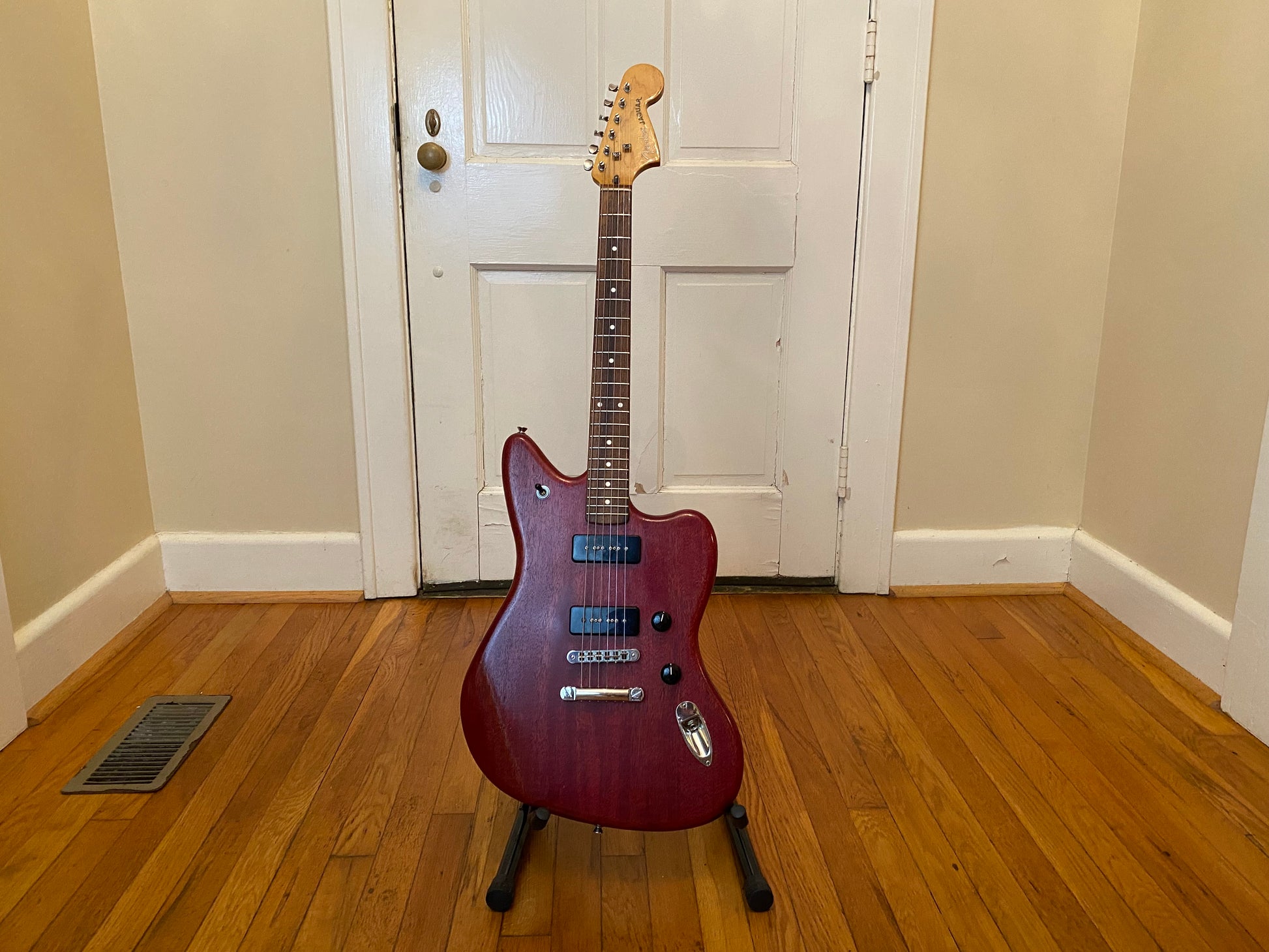 Here is a super nice and clean 2012 Fender Modern Player Jaguar P90 finished in a satin Transparent Red. This guitar has been completely overhauled and plays and sounds fantastic.