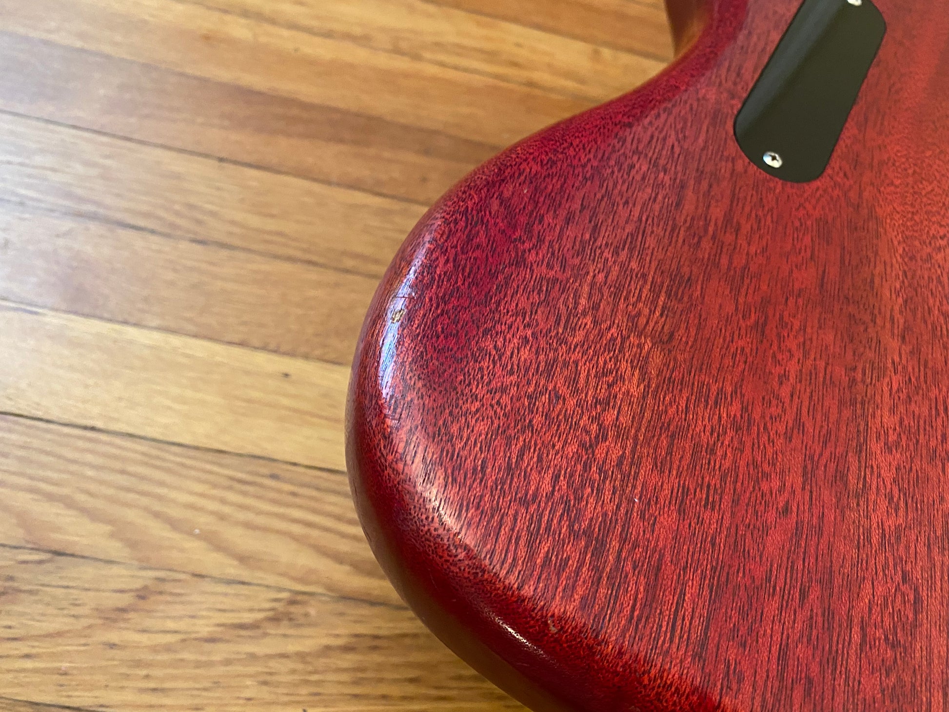 Very minimal wear on this guitar overall - satin finishes are typically very soft and show a long of button/buckle wear. The most notable blemish being a barely noticeable chip on the bottom front edge of the headstock that has been clearly pictured.