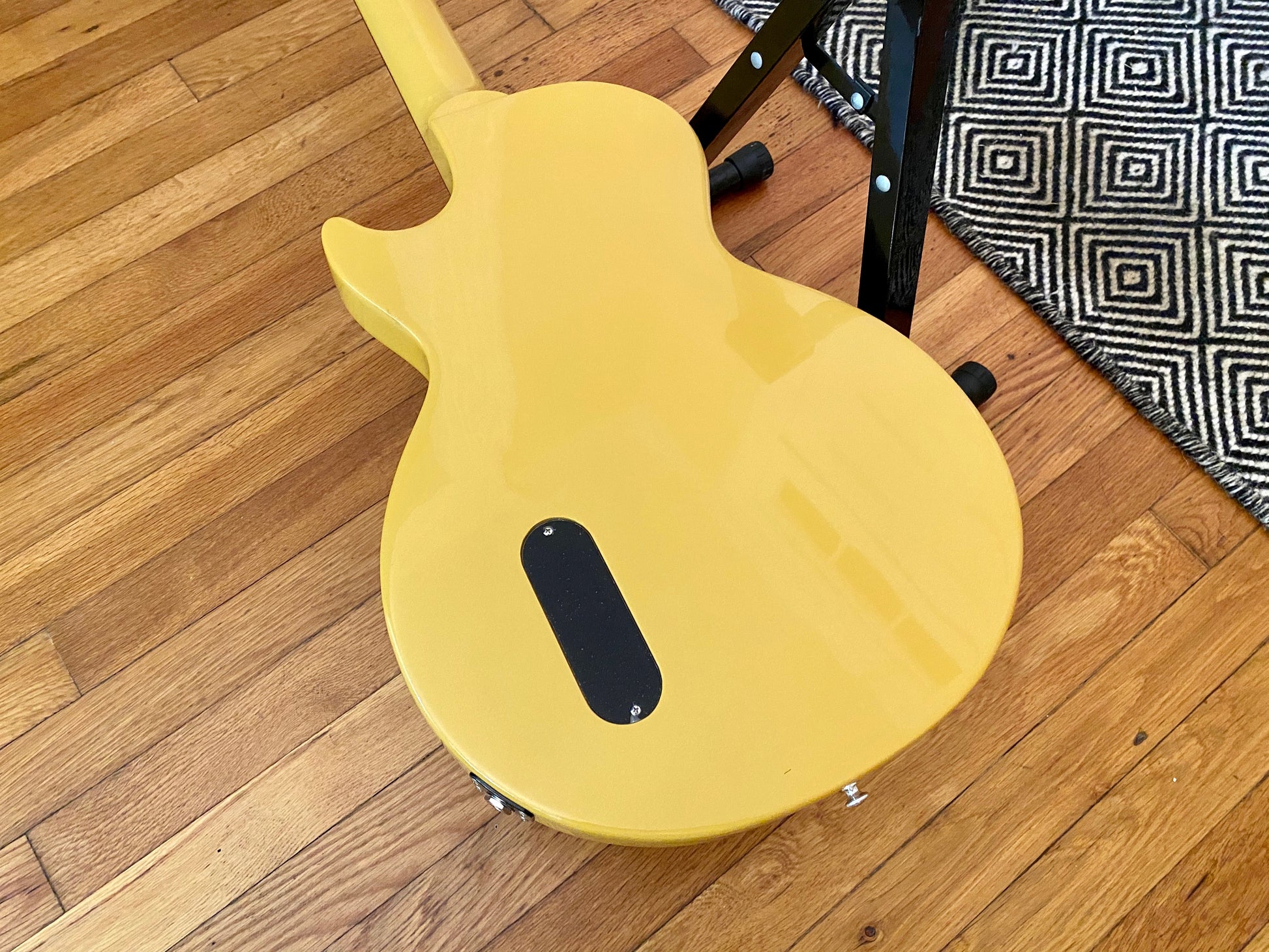 Here's a super nice and clean 2012 Gibson USA Les Paul Junior equipped with a true P90. The gloss yellow finish shows exceptionally well without any notable blemishes - very light playing wear at most.