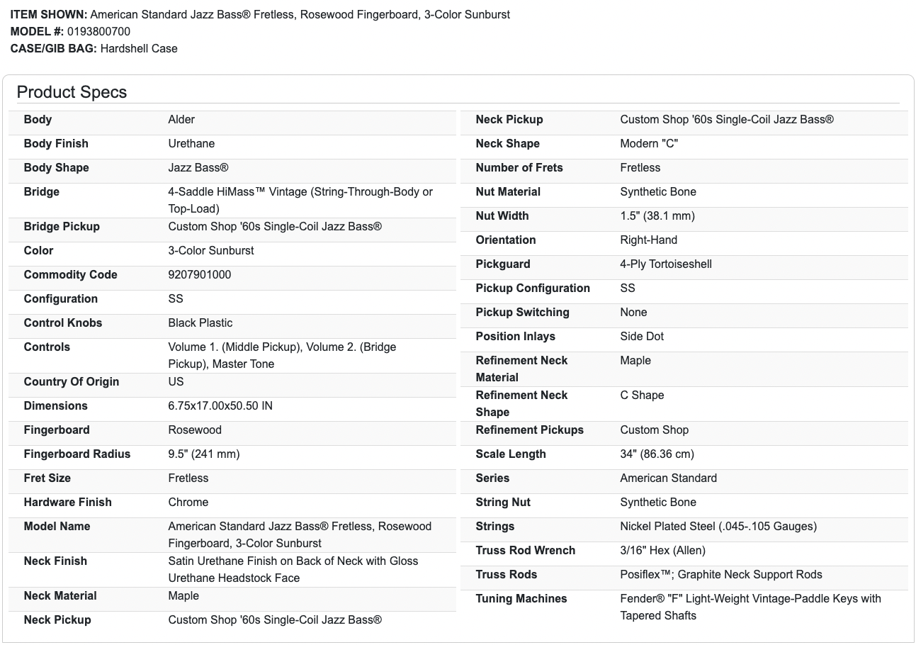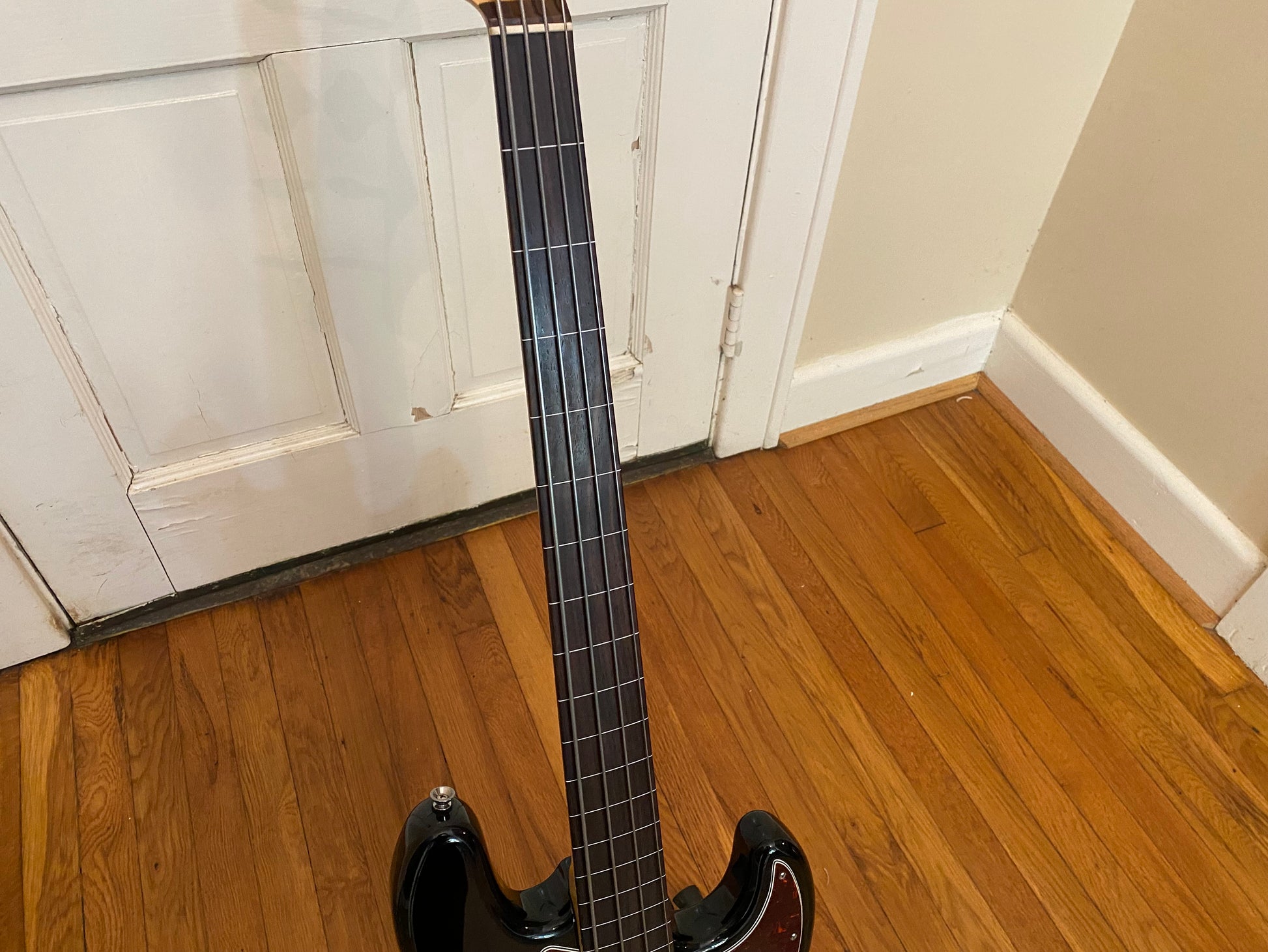 Here's an exceptionally nice and clean Fender American Standard Fretless Jazz Bass finished in its original 3-Tone Sunburst. Comes complete with the original Fender hard shell case and all original case candy.