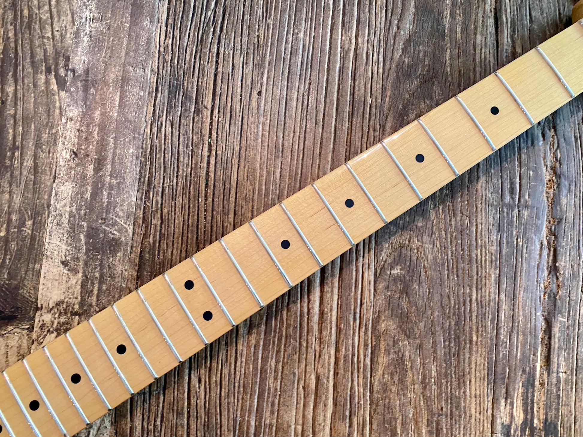 The frets and neck itself are in fantastic shape. No notable blemishes. The neck is straight and truss rod functions properly. Could be the perfect piece to finish off your next project.