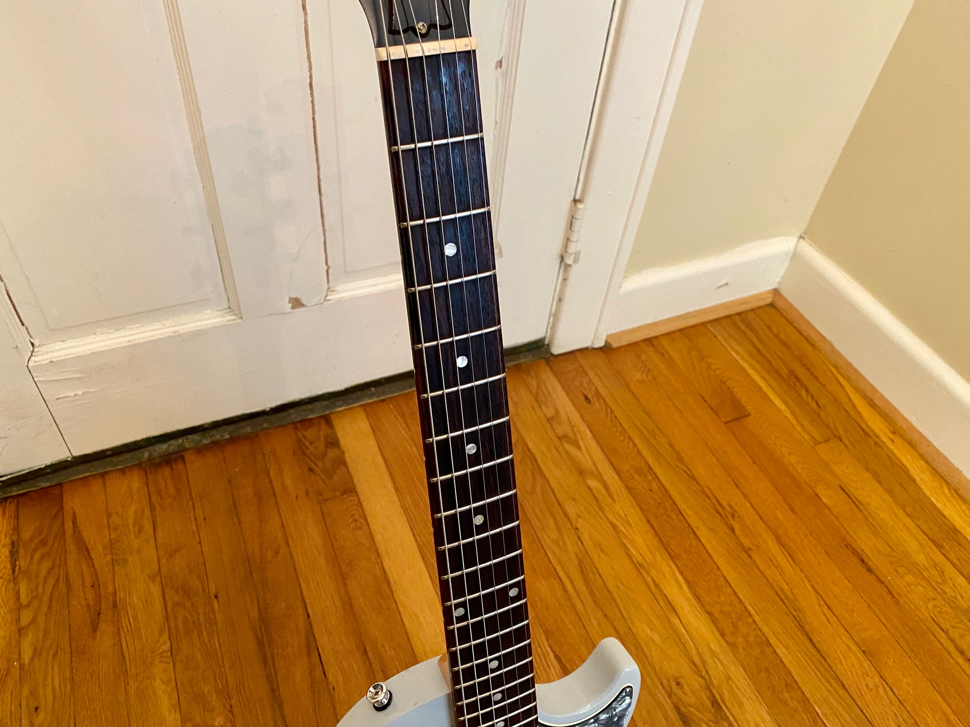 Here's a super nice and clean 2017 Gibson S-Series M2 finished in Phantom Grey - it plays absolutely fantastic. The neck is straight and the truss rod functions properly. The fretboard has been cleaned and conditioned.