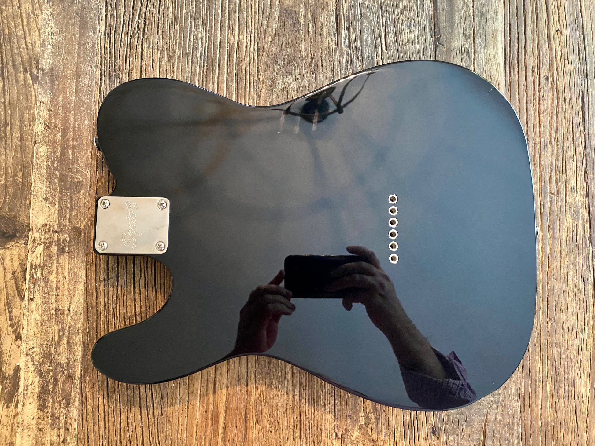 Here's a super nice and clean 2019 Squier Classic Vibe 70s Telecaster Custom body finished in black - complete with all original hardware and pickguard (including the jack cup that is not pictured).