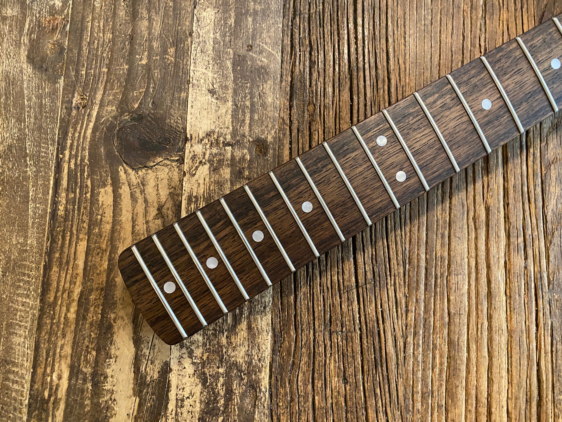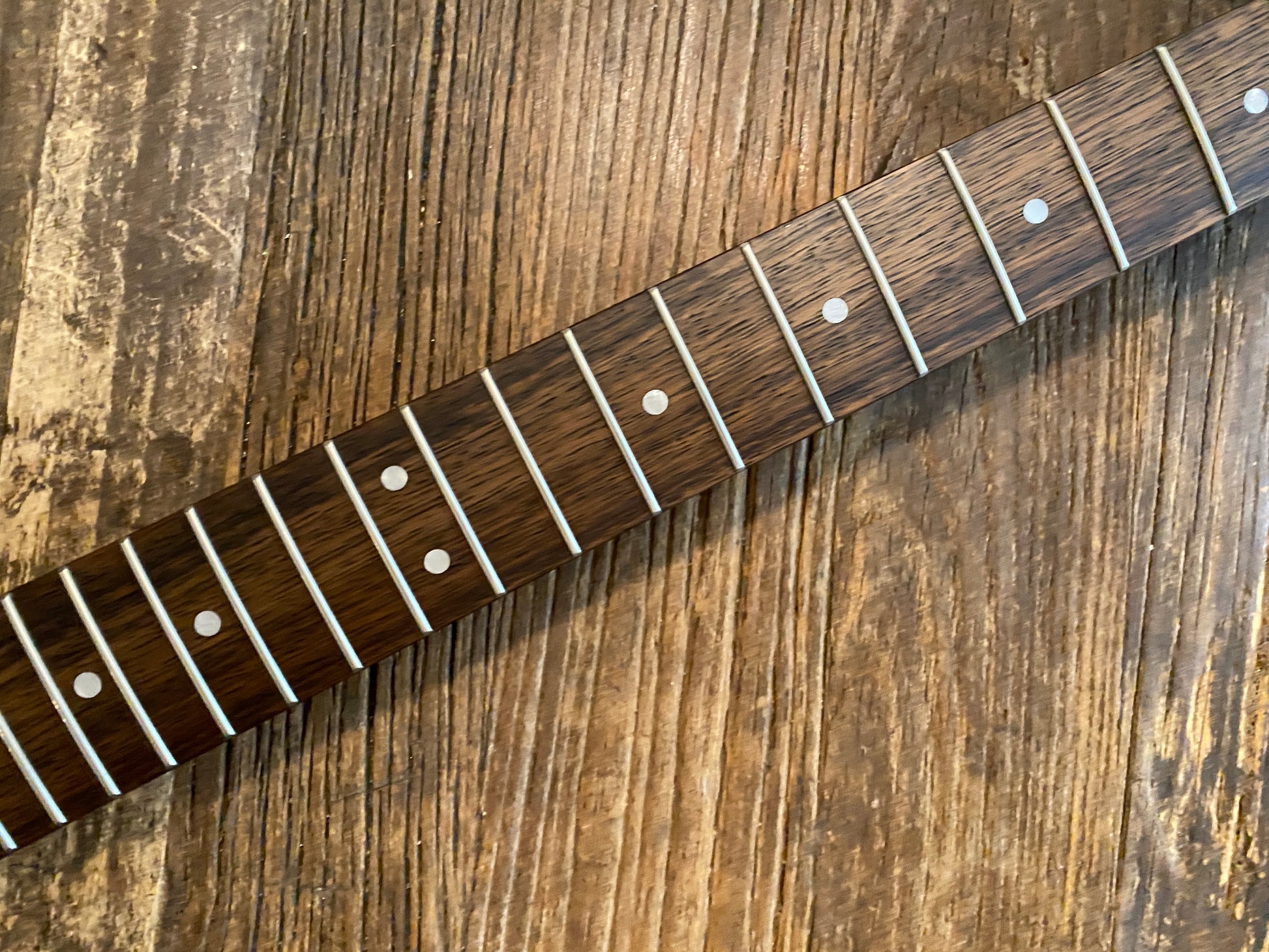 25.5" Scale Length w/ 21 Frets. It could be the perfect piece to finish of your next project.