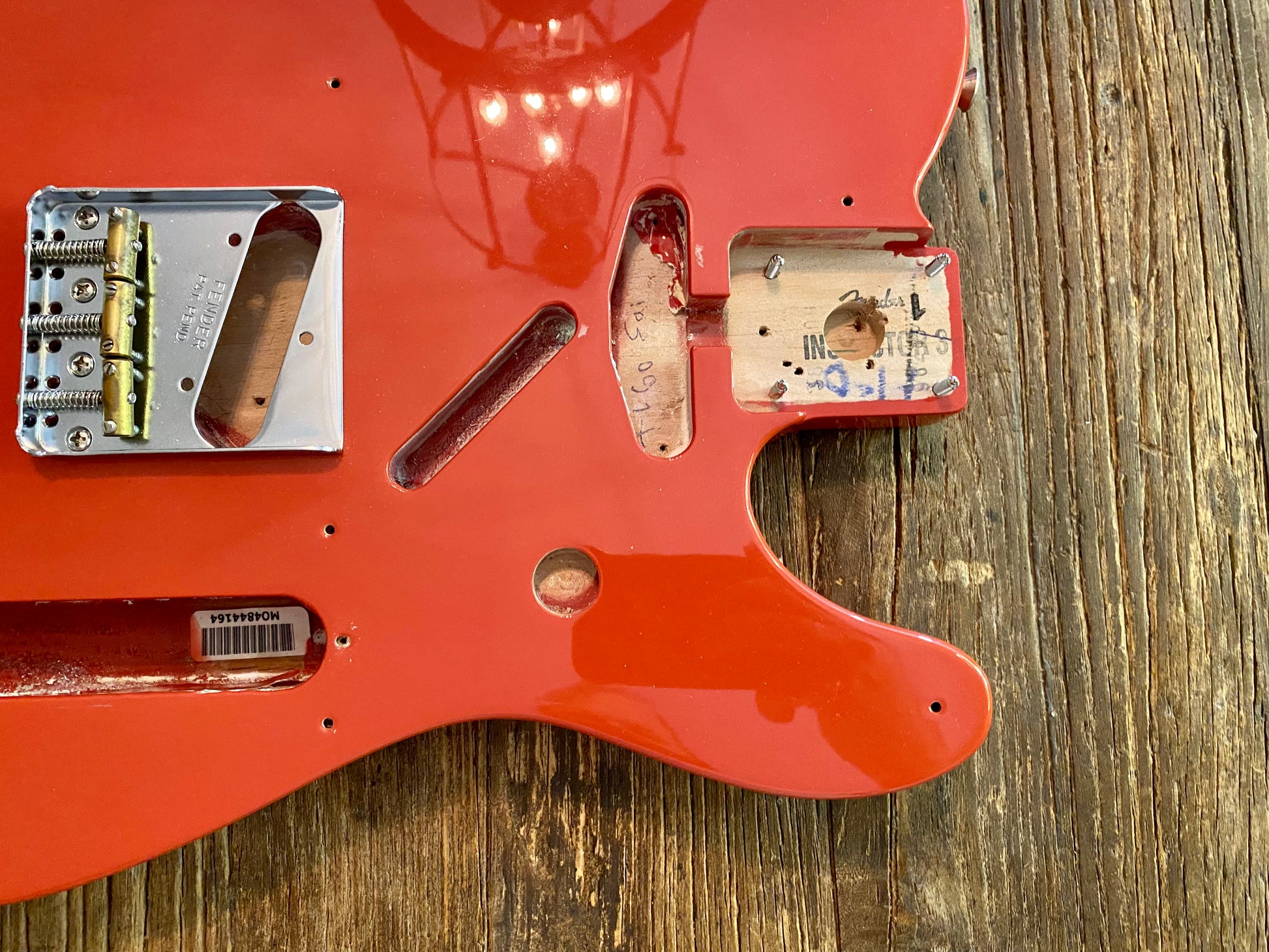 Here's a super nice and clean 2019 Fender Vintera '50s Telecaster Body complete with original hardware. The Fiesta Red isn in fantastic shape and shows virtually zero wear - very light playing wear with a small scratch on the back rear that doesn't show well in pictures. Output jack cup is not included. Weighs in at 5 lbs 3 oz.