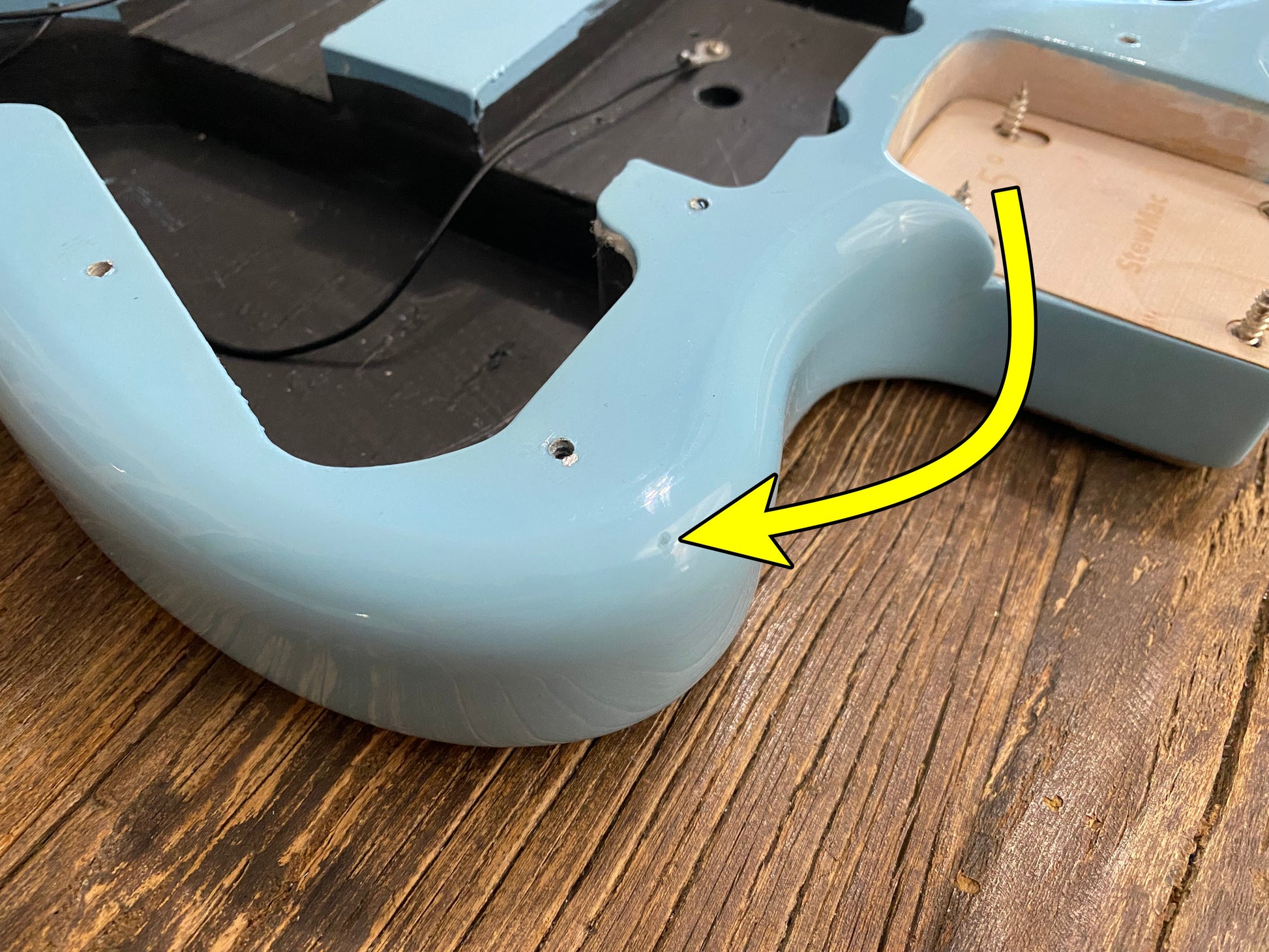 Shows extremely well with only very light playing wear - there is one tiny pin sized chip/ding on the front side of the power horn which would be considered the worst of the wear. It is clearly pictured and would hardly be worth mentioning if the rest of the body wasn't so fresh.