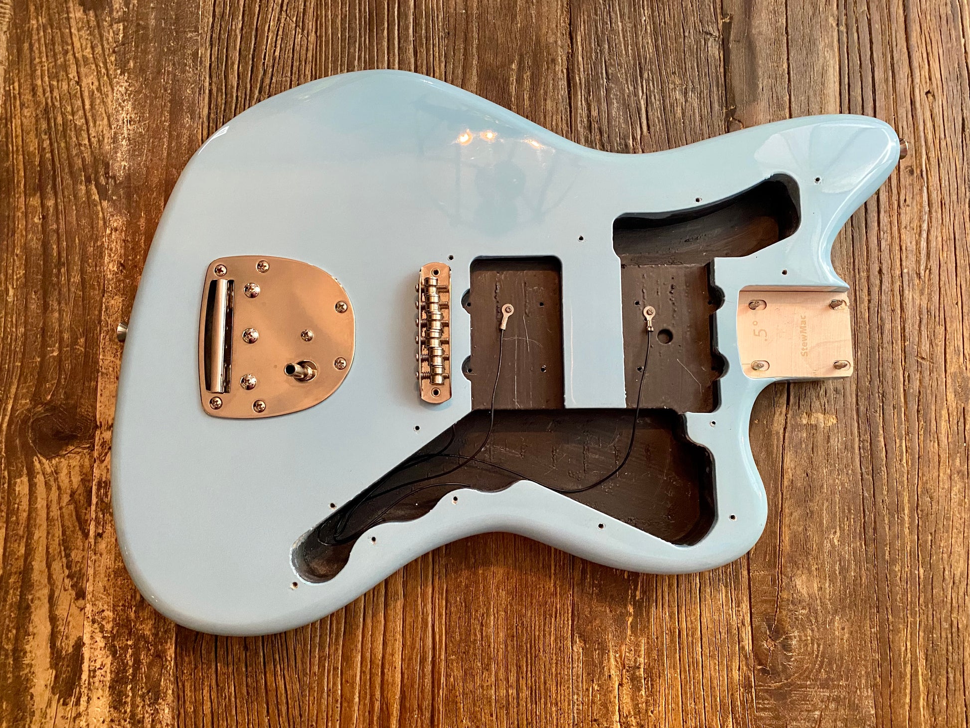 Here's a super nice and clean 2019 Squier by Fender Classic Vibe 60s Jazzmaster body finished in the original Daphne Blue. Comes with all the original hardware; tremolo (no arm is available), bridge, neck plate and screws, and strap buttons.