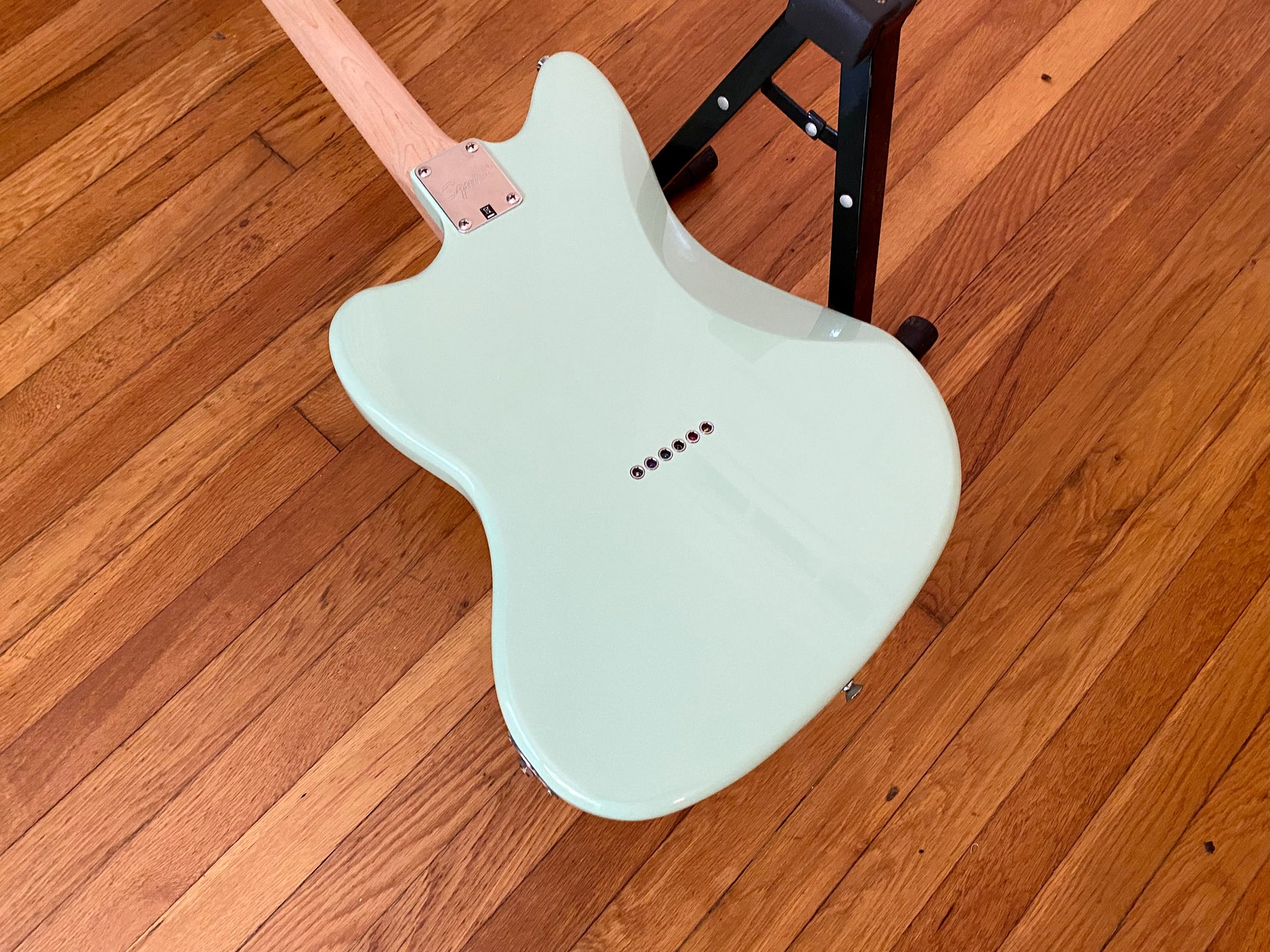 Here's an extremely nice and clean 2020 Squier Paranormal Offset Telecaster finished in the original Surf Green. This guitar has been completely overhauled and now plays and sounds absolutely fantastic.