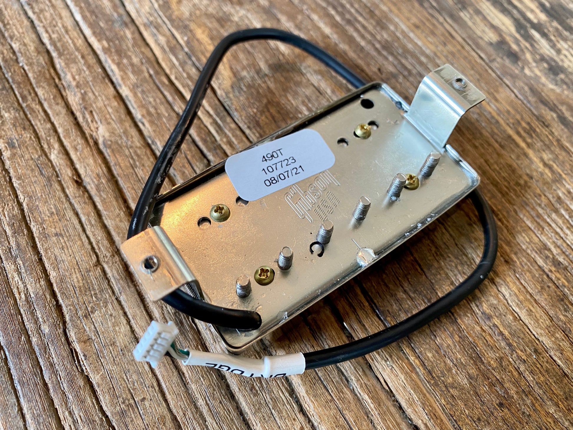 Here's a super nice and clean Gibson USA 490T Humbucker for the bridge position fresh out of a 2021 Gibson Les Paul Tribute. Comes with a 4-Conductor Quick Connect for easy installation - quick connect can also be cut off for traditional installation. Meters out at 8.15 kΩ DCR. Comes complete with springs and screws.