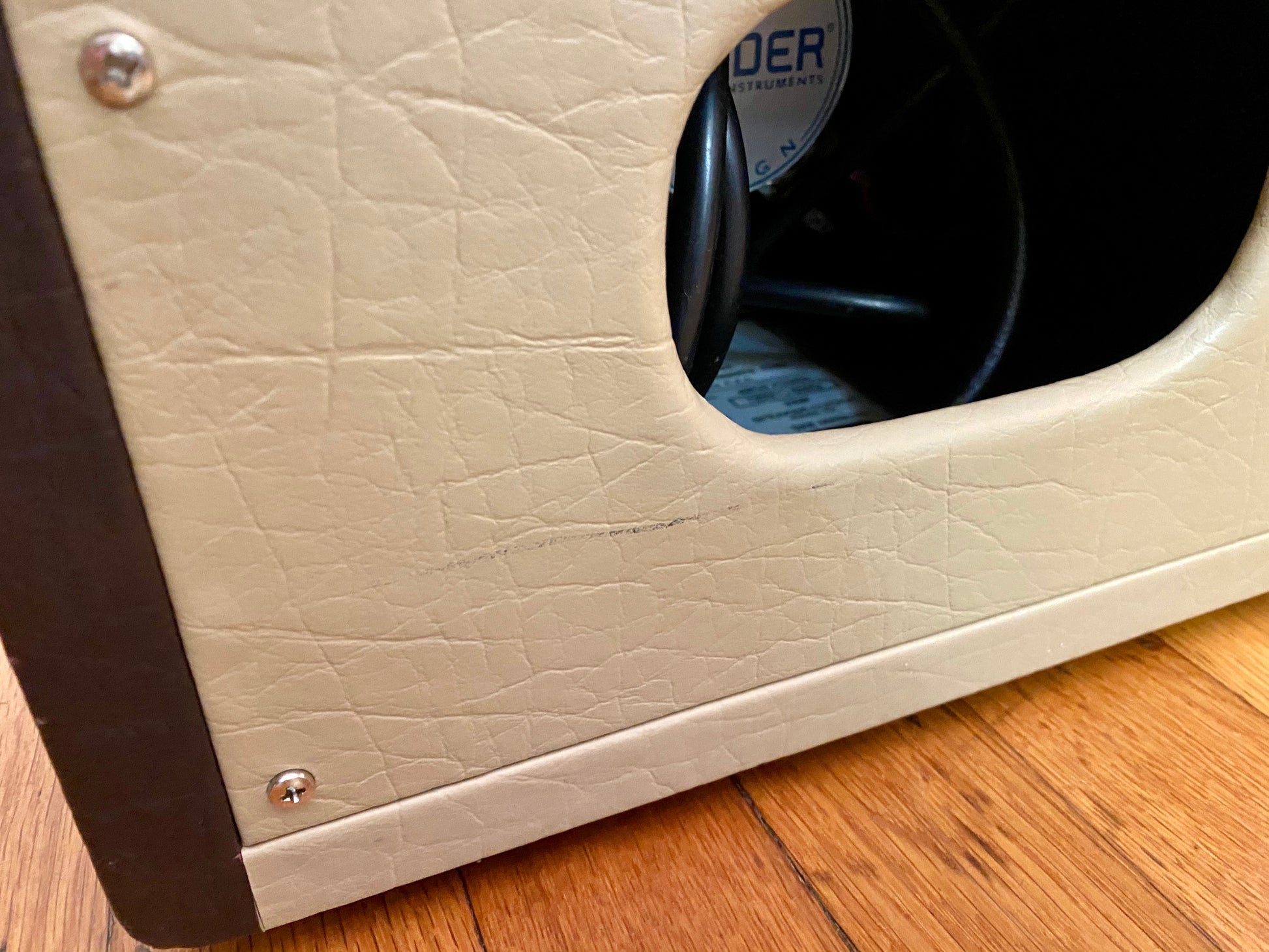 Here's a super nice and clean 2007 Fender Champion 600 Reissue 1 x 6 Tube Combo. This combo is all original with the exception that the original LED pilot lamp has been converted a more traditional #47 bulb (the jewel lens was missing and a metric replacement was not readily available). Extremely clean with a few minor nicks/blemishes that have been clearly pictured - one of the seams is barely lifting on the front panel.